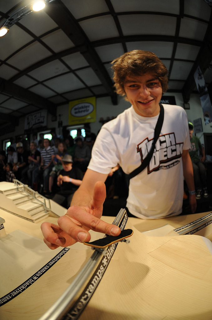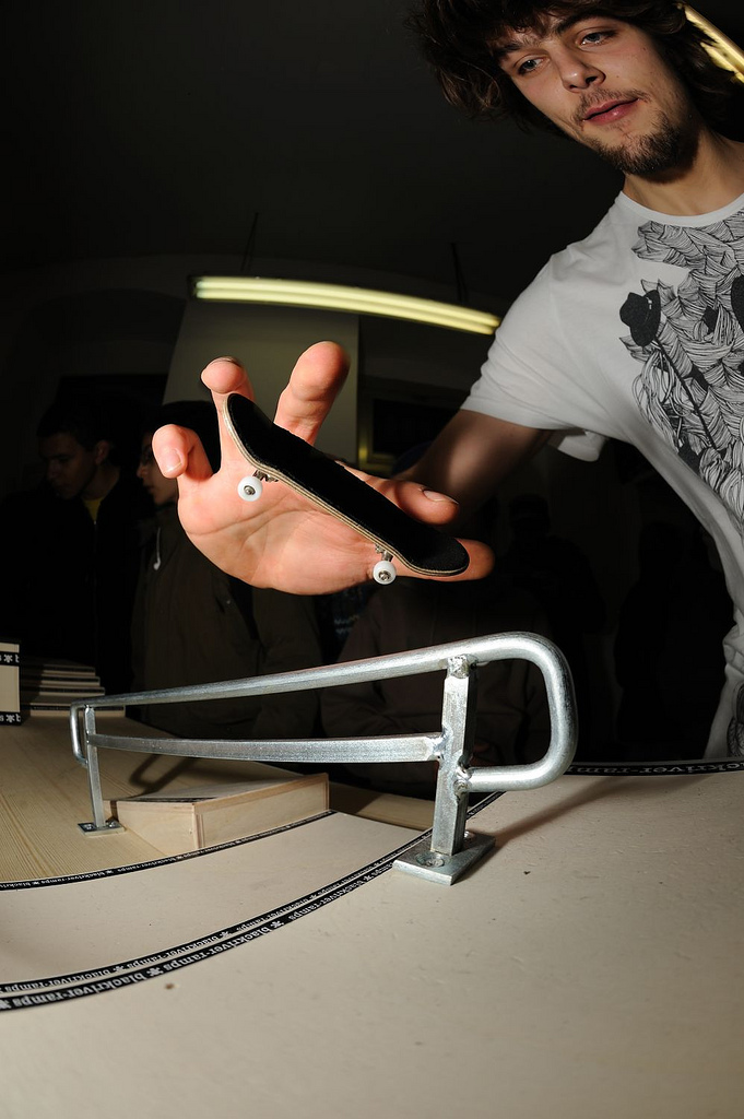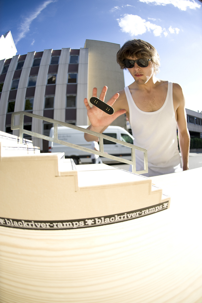 Let’s continue with photo gallery of famous riders. Today’s one is very well known rider Dimitri Schlotthauer. Everybody know him for his winning of many competitions for example last year’s EFC European Fingerboard Cup where he landed every single trick like a machine. He won a lot of competitions like that and everyone should remember his perfect style and very clean tricks. Photos will tell you more and show some landed tricks on different obstacles.