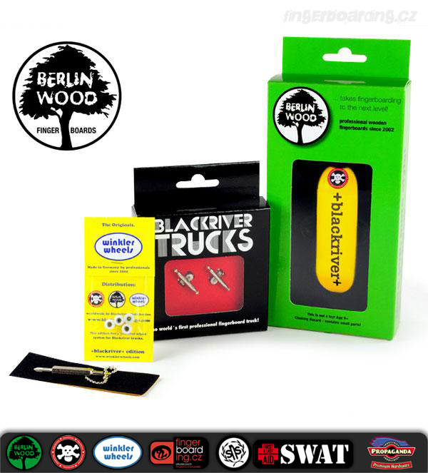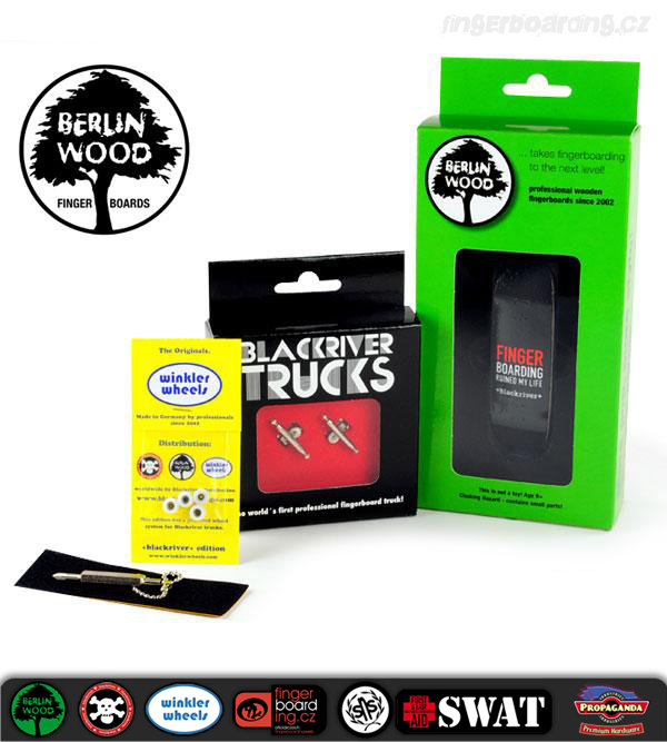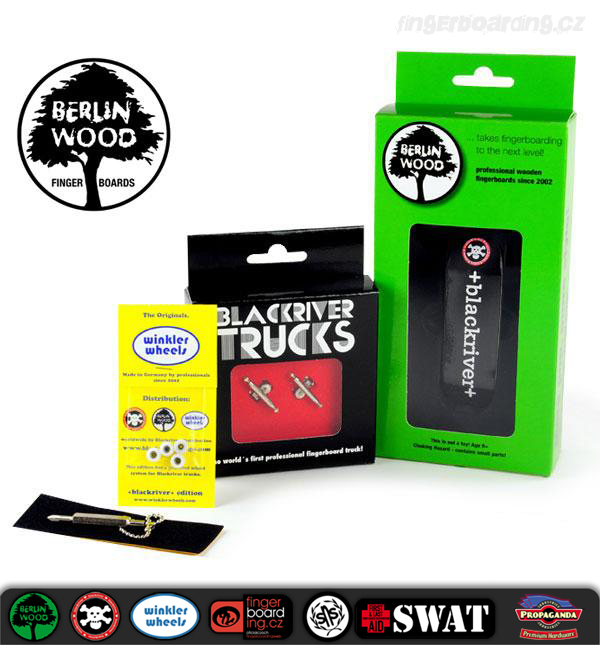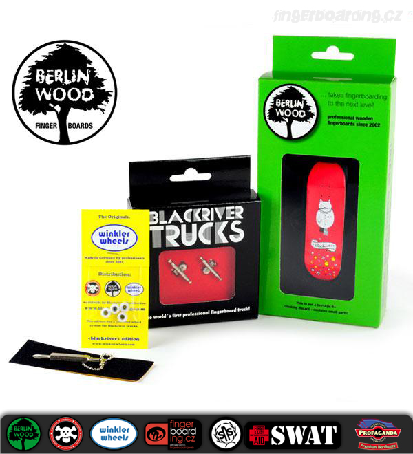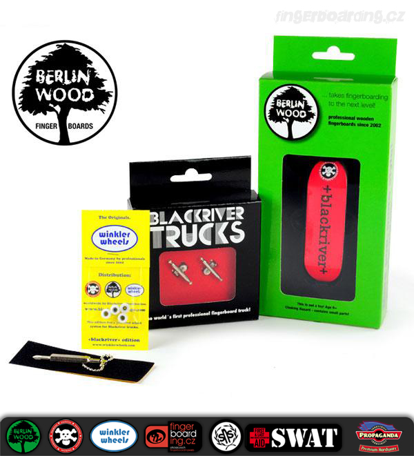 Byla jen otázka času, kdy se na Swatu objeví komplety na špičkové a profesionální úrovni. Nyní jsme se dočkali a máme je k dispozici. Na výběr je celkem z 18ti designů. Jeden komplet se skládá z krásných +Blackriver-Ramps+ trucků, které patří k absolutnímu vrcholu spolu s BerlinWood deskami. Samozřejmě s luxusními koly WinklerWheels, které u takového kompletu nesmí chybět. Součástí je také riptape a jako bonus obdržíte kvalitní +Blackriver-Ramps+ šroubováček na trucky. Pokud tedy přemýšlíte o nejlepší dostupné kvalitě, zvolte tyto komplety. Nebudete litovat!