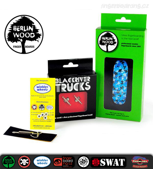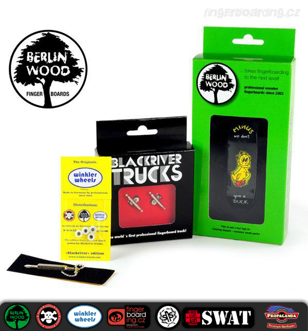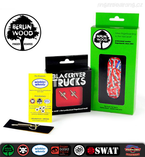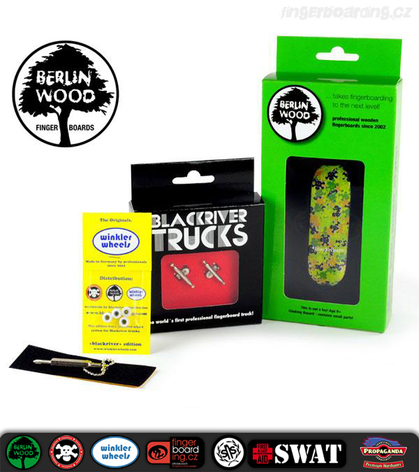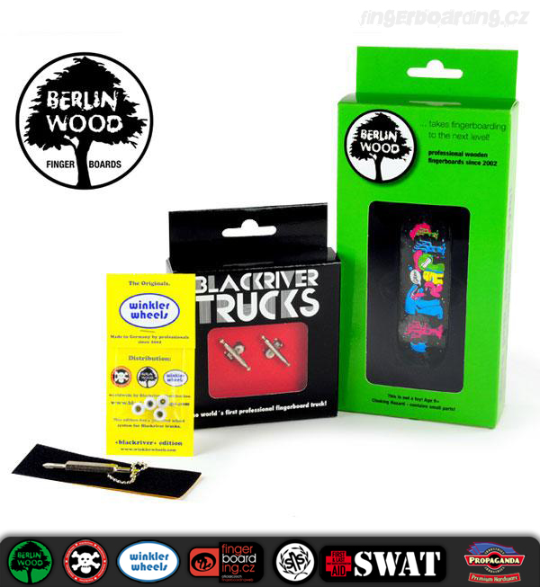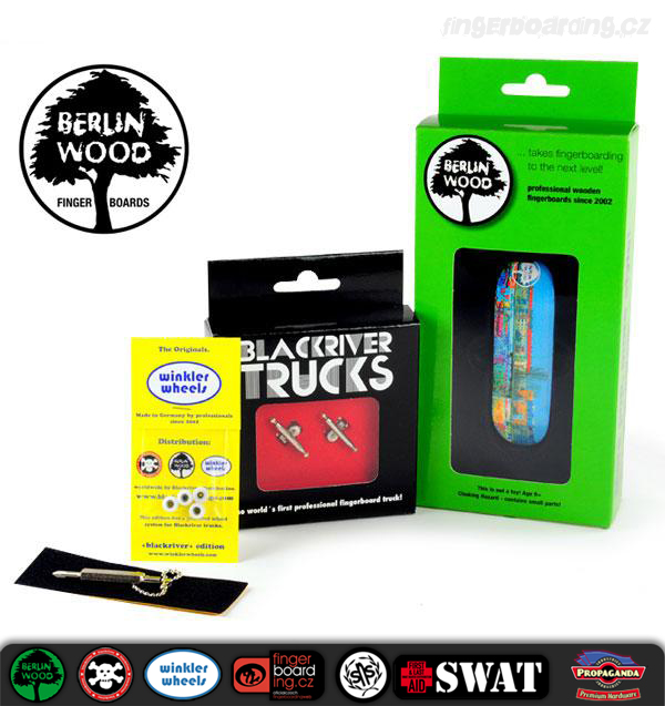 Tyto komplety jsou absolutní špička na trhu. Rozdíly tam jsou a není jich málo. Pokud jezdíš na TechDecku a něco umíš, tak ti to na tomto kompletu pujde aspoň 2x lépe. BerlinWood je mnohem lehčí než TechDeck, je wide tedy 28 mm široký a samozřejmě 100 mm dlouhý což umožňuje mnohem lepší ovladatelnost. Je 5ti vrstvý a do detailu propracovaný. Kvalitní dýhy. Potisk je tištěný přímo na dýhu a tak se časem opotřebovává podobně jako u opravdových skateboardových desek a váha se minimální. Celkový tvar připomíná tvary skateboardů. Trucky, které dostaneš k tomuto kompletu jsou špička. Nic lepšího se sehnat nedá a jejich životnost je velmi vysoká, to platí i pro desku. Kolečka Winkler Wheels zaručují perfektní jízdu a přilnavost. Skvělá točivost a plná kompatibilita s ostatními produkty je zaručena.
