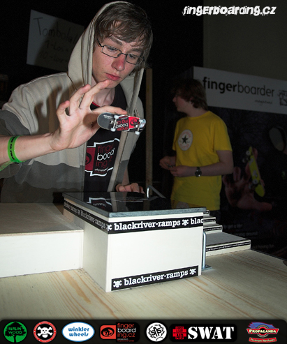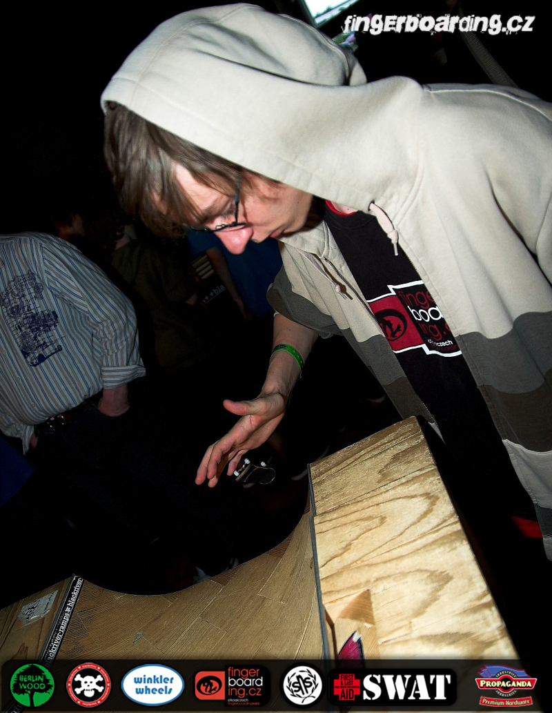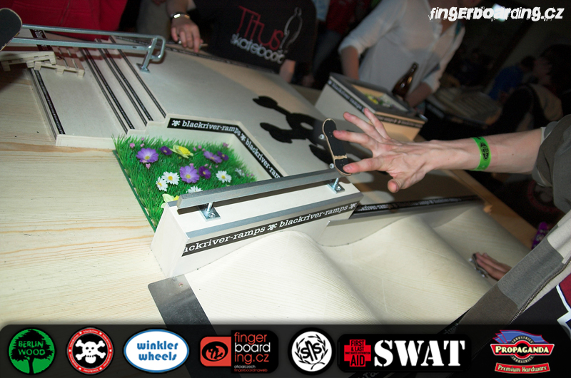 Určitě všichni znáte pojem Fast Fingers… nejspíš to spojujete s nejlepšími jezdci a nejčistšími triky. A máte pravdu. Letošní rok 2010 se konal jíž 13. contest ze série Fast Fingers.Před začátkem contestu zaujímám trochu nervózní své místo v porotě. Můžeme tedy začít hodnotit. Jede 152 jezdců. U každého hodnotím maximálně 100 bodů. Klasika. Po asi hodině, hodině a půl, zdá se to dlouho, když je člověk soustředěný na triky, jede poslední jezdec. Svými triky mě zaujme třeba neznámý jezdec, o kterém nic nevím, nebo malý 10 letý Tobi, který to tam celkem že i vraždil. Bohužel byli všichni nervózní, takže výkony nejsou kompletní. Během jízdy Dimtriho si povídám s týpkem z Itálie, co sedí vedle mě, diskuze o tom, jestli to těma stylovýma trikama vyhraje. Nevzpomínám si, k čemu jsme došli. Po 152. jezdci se tedy všichni hrnou na park, mimochodem nádhera, a začíná celkem zábavná, ale i zdlouhavá pauza. S Hulčou, který dopadl dle mého názoru skvěle, ale na tu obrovskou konkurenci bohužel nestačil, bereme kameru a jdeme točit na některém z těch Blackriver parčíků. A že jich tam bylo. Hlavní hvězdou byl samozřejmě G8, ale i u jiných je narváno. Je tam tolik lidí, že ani s kamerou a pokřiky „Jsem porota“ nebo „Točím, prosím uhněte“ člověk neboduje. A to je právě ta zábava. Někteří to brali otráveně, ale bylo vidět, že jakmile došli k parčíku, tak se otrava z jejích obličejů vytratila. No, tombola pomalu končí. Vracím se tedy k porotě. Začíná game of CEO. Je to celkem sranda, Malý Tobi dokonce poráží celkem dobrého zkušeného jezdce. Na jména nejsem, až vyjdou výsledky, stačí si najít, koho porazil Tobi. V game of CEO jede celkově 30 jezdců, je to typu versus. Postupuje přirozeně 15 jezdců. Ti jedou 45 sekund na parčíku. Tam to začalo padat. Tváře jako Elias, Dimitri a Schneider to tam celkem hustě vracejí. U nich nevidím nepovedený trik. Prostě neexistuje. U jiných jezdců jsem počítal chyby, maximální počet byl sedum. A to je dost slušné, když počítám i chybu, že kickflip impossible nedopadne do 5 – 0. No, postupuje 5 jezdců. Je to Elias, Schneider, Dimitri, Mueller a pokud se nemýlím, tak Daniel Zeisse. Jako první vyhořel Zeisse. Je pátý. Obrovský potlesk. Pak padá Schneider. Neuvěřitelná atmosféra, měl jsem šanci s ním i pokecat. Pak dostává konečné písmeno Bene Muller. Je třetí, pro něj obrovský potlesk. Nakonec máme neuvěřitelný souboj mezi Eliasem a Dimitrim. Elias má předposlední písmeno, první pokus nic. Na druhý pokus se celkem nervózně rozjíždí… Timo to trefuje pohledem na tabulku a slovama „Ou Shit…“. V sále ticho. Druhý pokus, prkno letí… nedopadne. V tu chvíli se celý sál zvedne, posledních 5jezdců vezme Dimtriho na ramenou a sál tleská. Je to emocionální zážitek na celý život. Dav je v extázi. Dimitri má na tváři úsměv mistra světa. S Hulčou musíme bohužel odejít, protože návrat do Čech nás tlačí časově. Na vyhlášení tedy nejsme. Celé je to ale natočené kameramany Blackriver, takže bude šance se na to podívat…Pojďme si to shrnout. Němci ví jak na věc. Nejen s jízdou. Oni umí dělat show. Komentátory Martin Winkler a Timo Kranz to tam celkem válí, jen škoda že Winkler nepředvedl nějakou „Winklerovinu“ typu golf s fingrem (: …… A Dimitri je zatím nejlepší rider, po stránce jak stylové, nad jeho ollie není, tak i trikové, kickflip impossible do smith grindu, to tam padalo, nikdo nezopakoval. Neuvěřitelný závody.