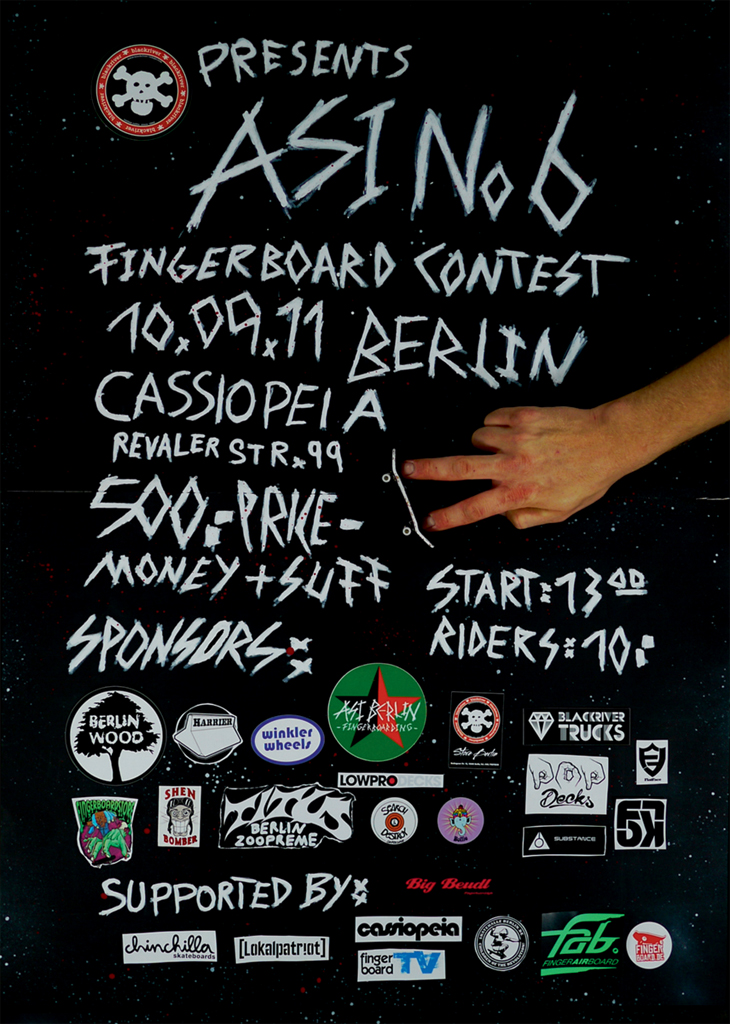 VideoJe to tak, před náma je další ročník téhle skvělé akce pod názvem Asi Berlin no.6. Všem je asi jasný o co jde. V Berlíně se potká světová elita aby se mezi sebou utkali o 500 éček a ceny od sponzorů. Celá akce vypukne ve 13:00 a pokud se na místo vydáte, tak si můžete být jisti, že je zajištěno i spaní na místě konání akce. Není se tedy čeho bát. Navíc dostanete přístup do místního skateparku a aby toho nebylo málo tak se na místě bude promítat video Pissing Fingers 3. Dole je plakát a nějaký další info najdeš zde.
